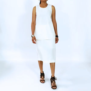 Off White Loose Sleeveless Round Neck Loose Top | ALPHONSINA