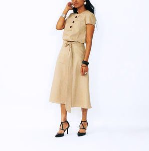 Tan Short Sleeves With Decorative Front Buttons Top | ALPHONSINA